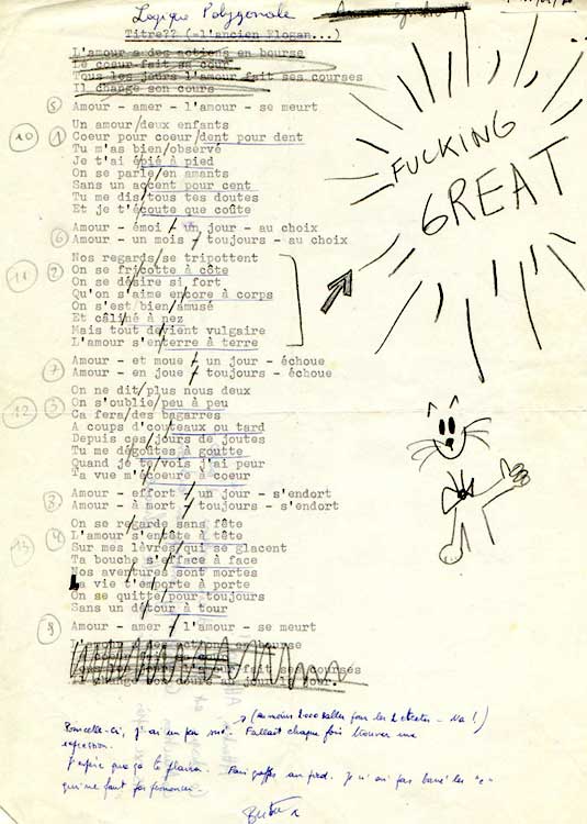et une fin énigmatique : "tu riais de mes paniques polyphoniques".
