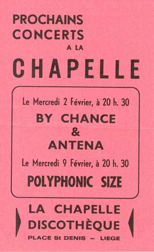 (promo, 1980) / 3 : Bruxelles, 3/4/1981 / 4 : Bruxelles, 16/2/1983 / 5
